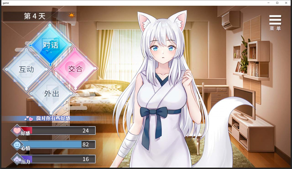 行动指令有【对话】【互动】【外出】和【H】等各种行动